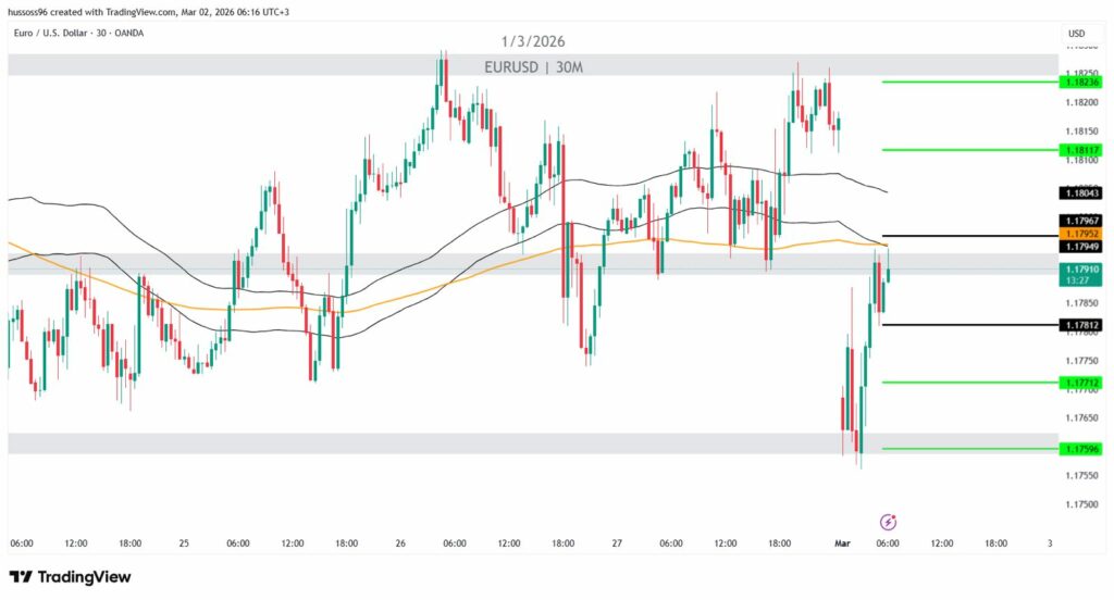 ملاحظة: السعر عاد فوق المنطقة المحورية، والثبات أعلى 1.17812 يدعم استمرار الارتداد