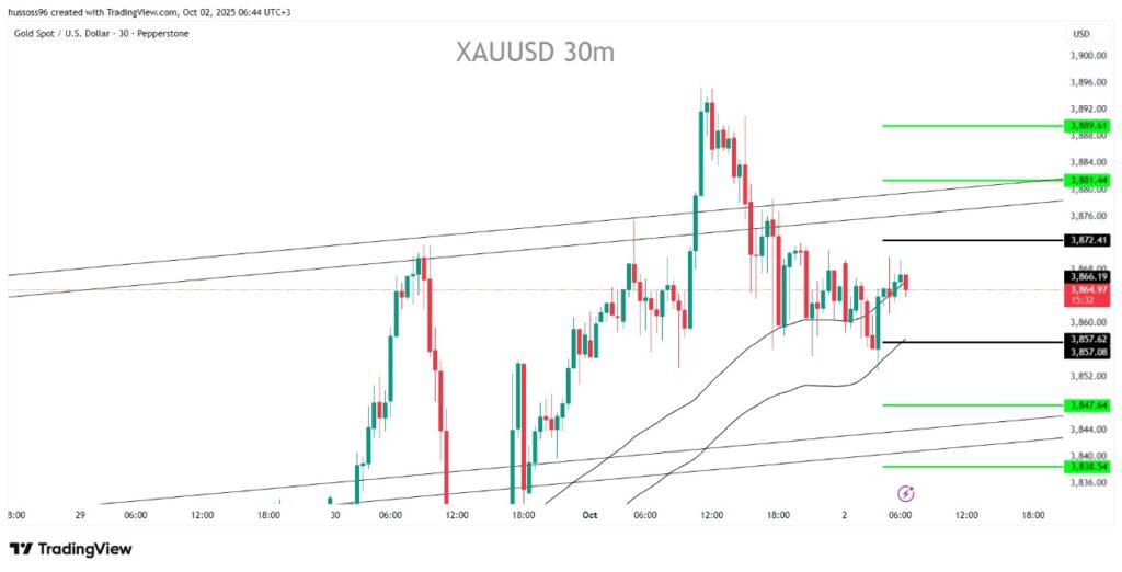 الذهب واصل التحرك قرب قممه التاريخية، مسجلاً 3860$ للأونصة، مدعوماً بتزايد الطلب على الملاذات الآمنة وسط المخاوف من الإغلاق الحكومي الأميركي واستمرار الغموض السياسي.