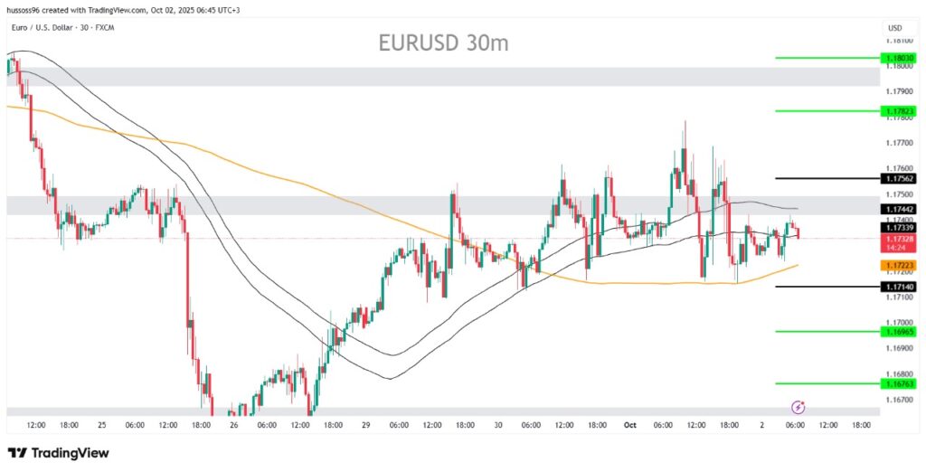 السيناريو الأول: شراء اليورو باختراق والثبات أعلى 1.1744 مع استهداف 1.1782 ثم 1.1803