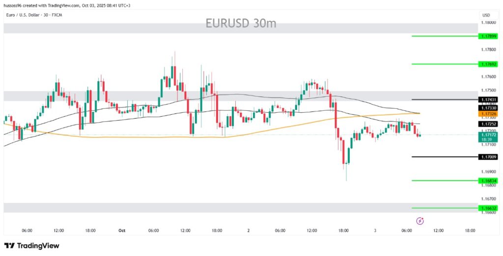 التعليق: الزوج يتحرك في نطاق جانبي ضيق، والاختراق أعلى 1.1733 أو كسر 1.1700 سيحسم الاتجاه.
