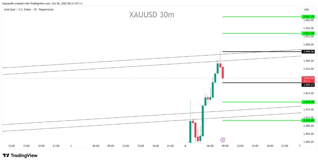 السيناريو الأول: شراء الذهب باختراق والثبات أعلى 3,944 مع استهداف 3,953 ثم 3,961