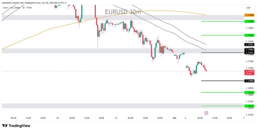 السيناريو البديل: شراء اليورو باختراق والثبات أعلى 1.1746 مع استهداف 1.1769 ثم 1.1789