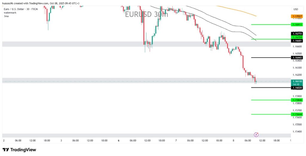 التعليق: الضغط البيعي مستمر على الزوج، واحتمال إعادة اختبار الدعم 1.1600 قائم، ما لم يخترق 1.1640 مجددًا.