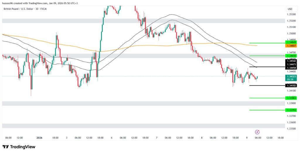ملاحظة: الاتجاه العام سلبي، وأي صعود يبقى تصحيحياً طالما السعر دون 1.3465.