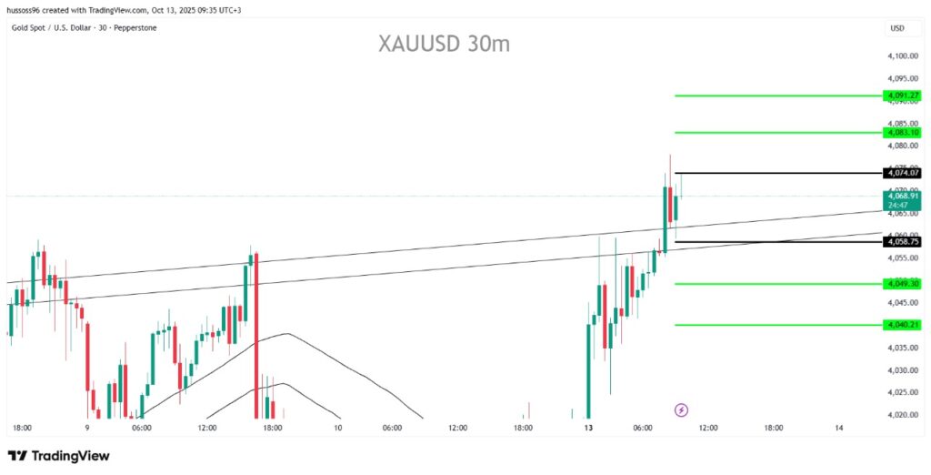 التعليق: الذهب يستعيد الزخم الإيجابي من جديد بعد ارتداد قوي من دعم 4,049، والإغلاق فوق 4,074 سيكون مفتاح امتداد الصعود نحو قمم الأسبوع.