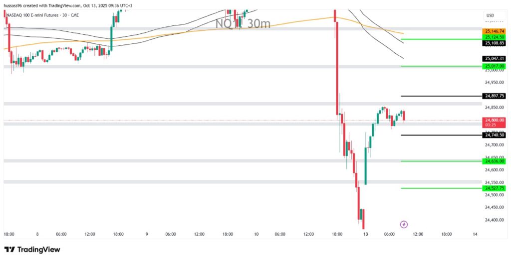 السيناريو الأول: شراء ناسداك باختراق والثبات أعلى 24,897 مع استهداف 25,017 ثم 25,124
