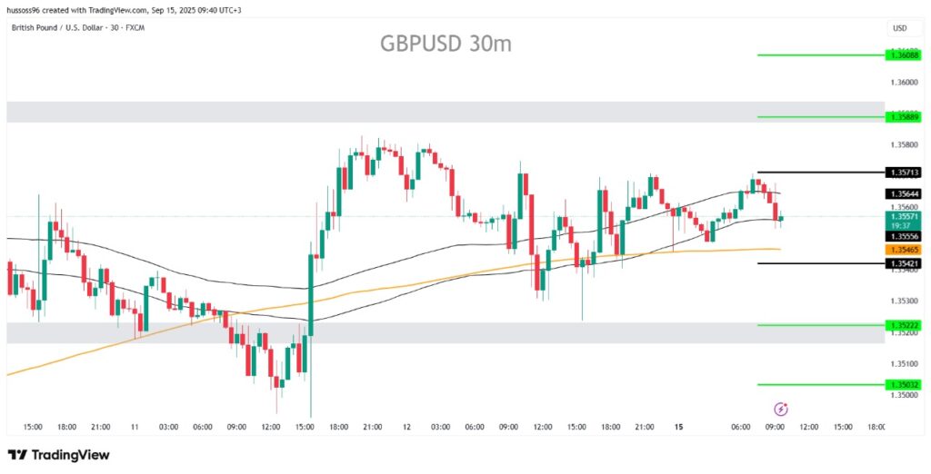السيناريو البديل: بيع الباوند بكسر والثبات أسفل 1.35421 مع استهداف 1.35222 ثم 1.35032