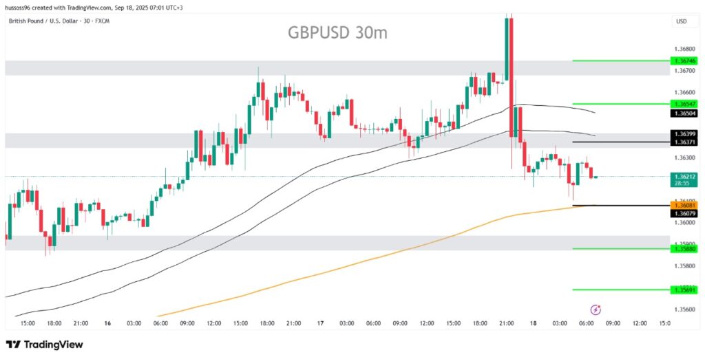 السيناريو البديل: بيع الباوند بكسر والثبات أسفل 1.36079 مع استهداف 1.35880 ثم 1.35691