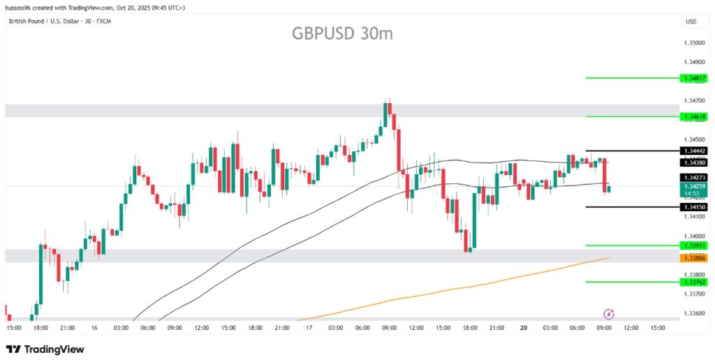 التعليق: الباوند يفقد بعض الزخم الإيجابي بعد فشل مستمر في تجاوز 1.3460، والثبات أسفل 1.3415 قد يفتح المجال لتصحيح أعمق على المدى القصير.