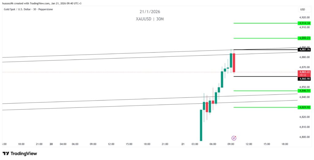 ملاحظة: الذهب سجل اندفاعاً قوياً، وأي تصحيح يبقى صحي طالما السعر أعلى 4,846.