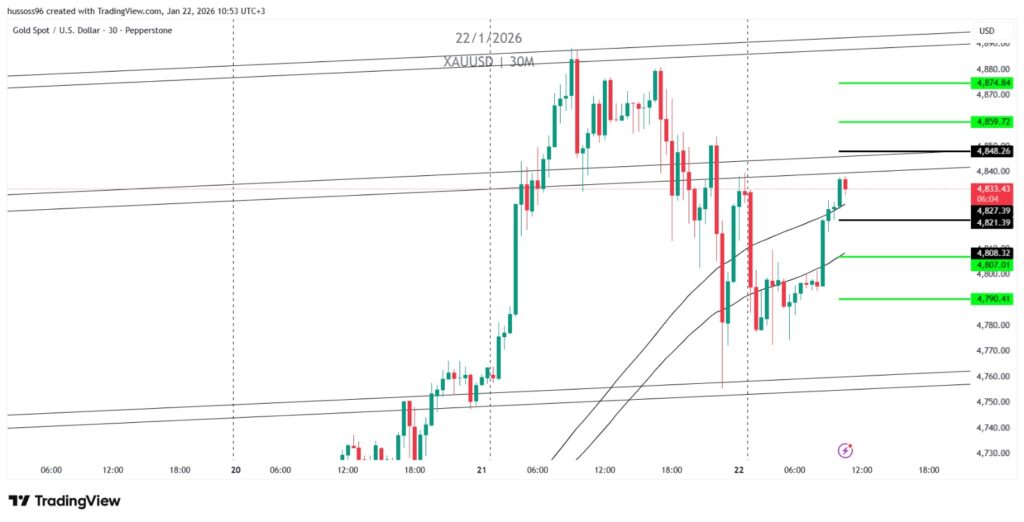 ملاحظة: الذهب يحافظ على قناة صاعدة واضحة وزخم شرائي قوي، وأي اختراق للمقاومة يعزز استمرار الاتجاه الصاعد.