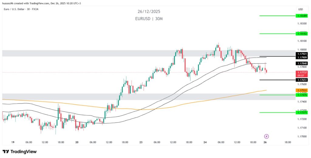 ملاحظة: التصحيح مستمر داخل الاتجاه الصاعد، والحذر من كسر 1.176 لأنه قد يوسع الهبوط.
