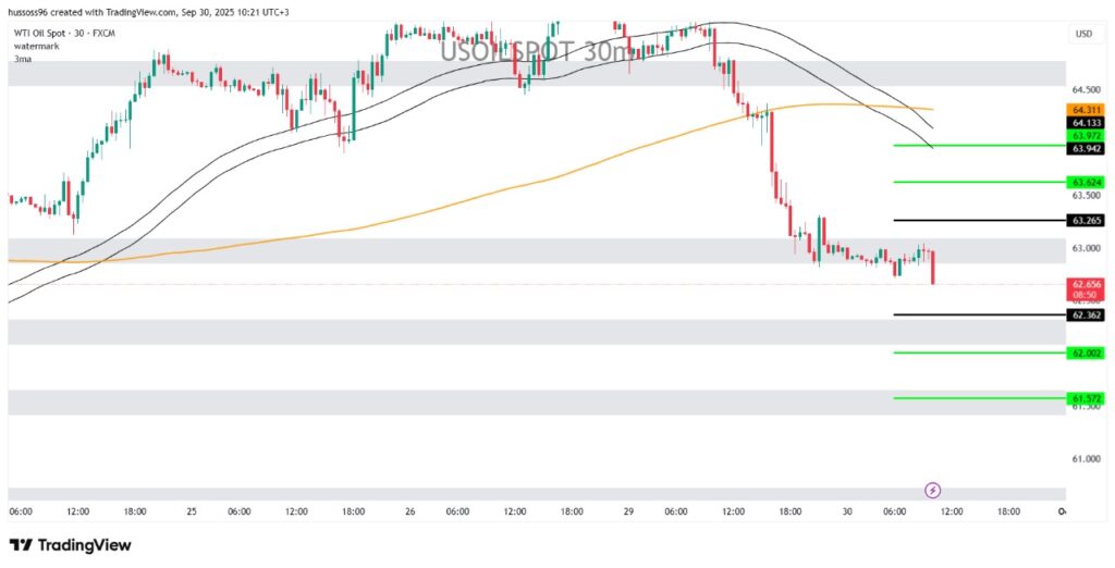 التعليق: النفط يتعرض لضغوط بيعية قوية بعد كسر مستويات دعم مهمة، مع وجود احتمالية ارتداد تصحيحي محدود.
