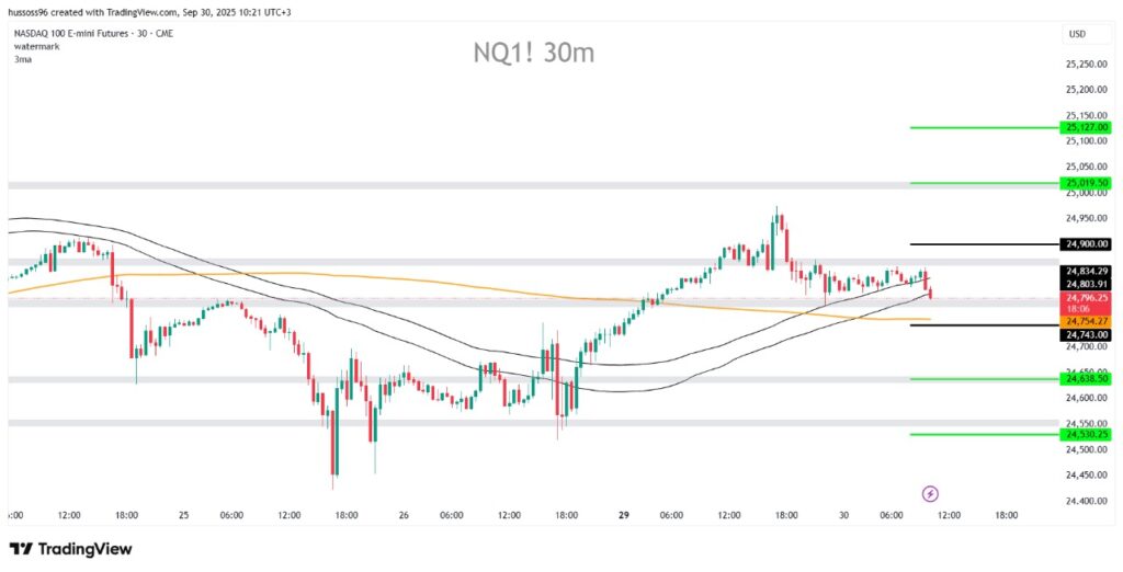 السيناريو الأول: شراء ناسداك باختراق والثبات أعلى 24,900 مع استهداف 25,019 ثم 25,127