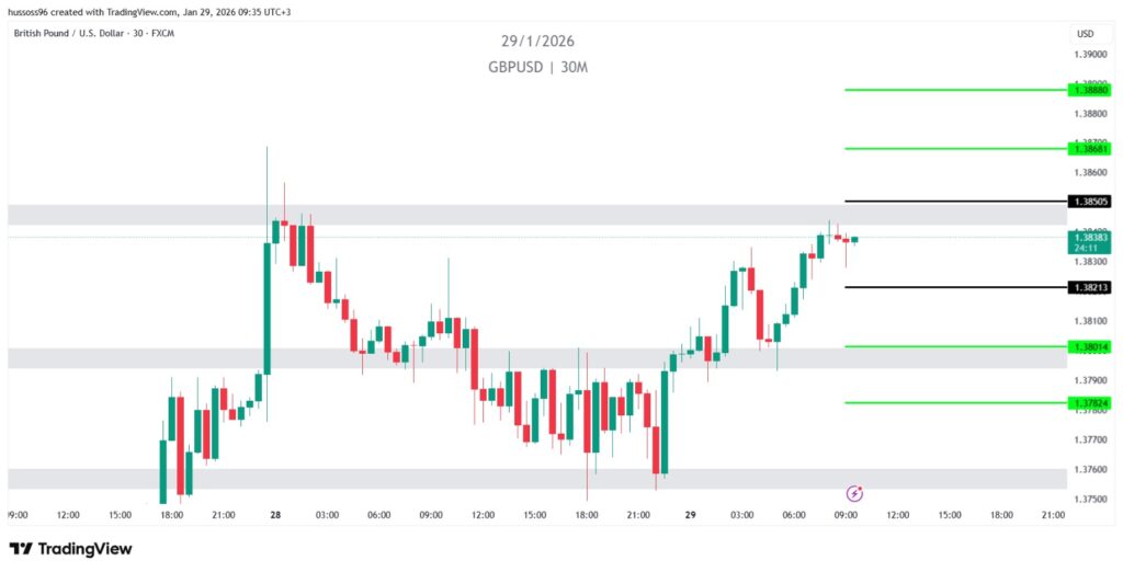 ملاحظة: الزوج يتحرك بقناة صاعدة، أي كسر 1.38131 يعني بداية تصحيح فقط.