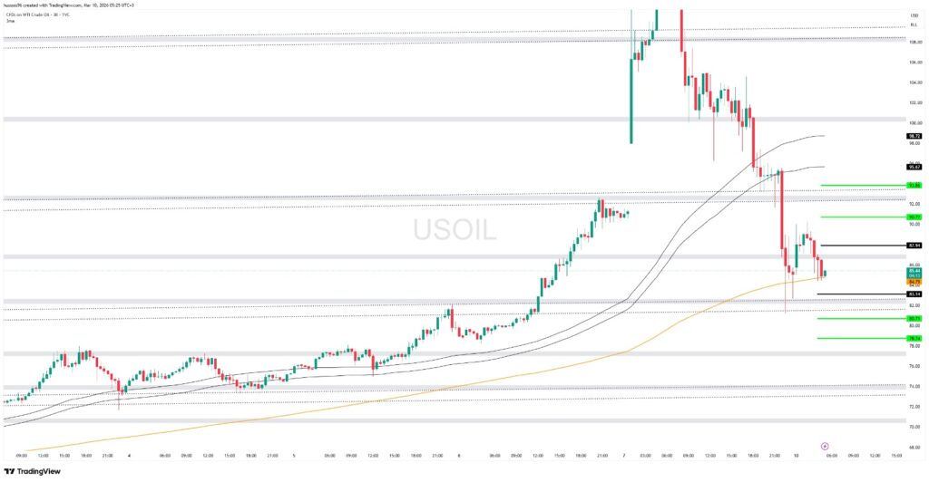 ملاحظة: النفط دخل في موجة تصحيح هابطة بعد الصعود القوي، وأي كسر لـ83 قد يفتح المجال لهبوط أعمق.