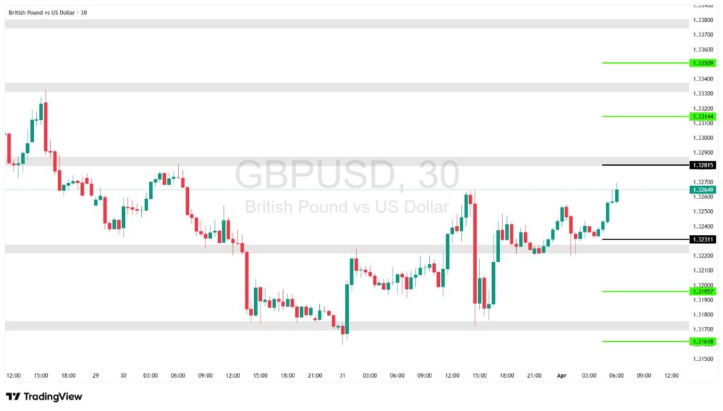 ملاحظة: الزوج في بداية موجة صعود، وأي تصحيح نحو 1.3231 ممكن يكون فرصة استمرار.