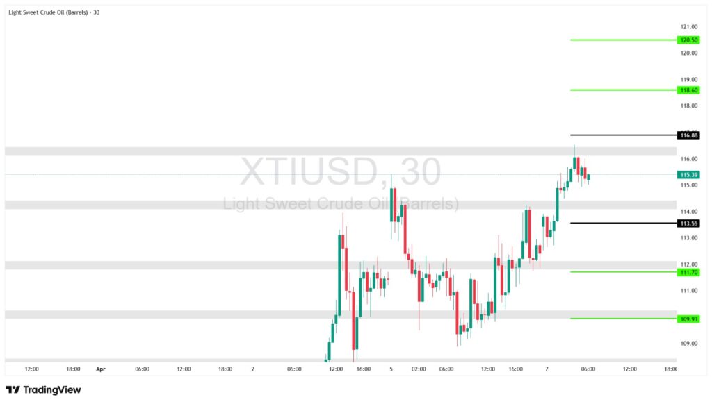 ملاحظة: النفط داخل موجة صعود قوية، والثبات فوق 113.55 يدعم استمرار الاتجاه.