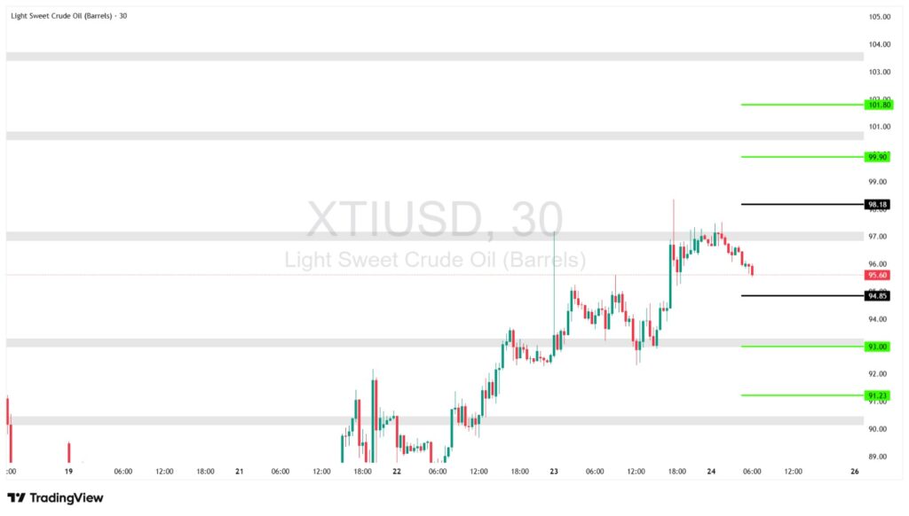 خام غرب تكساس الوسيط قرب 95 دولاراً للبرميل