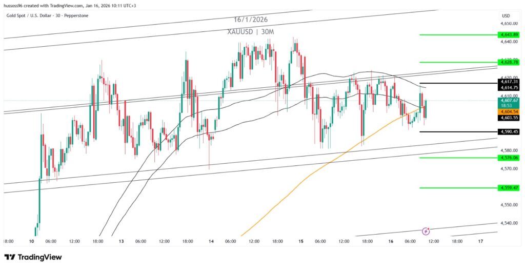 ملاحظة: الذهب ما زال يتحرك داخل قناة صاعدة، وأي هبوط يبقى تصحيحيًا ما دام السعر أعلى دعم القناة.