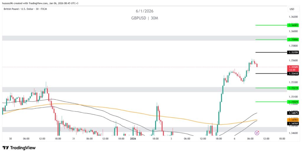 ملاحظة: الاندفاع الصاعد قوي لكنه جاء بعد موجة هابطة، وأي كسر أسفل 1.35418 قد يعيد الضغط البيعي.