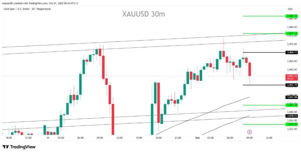 For gold, the yellow metal continued to rise to $3,870 per ounce, benefiting from a weaker dollar and the risk of a government shutdown, in addition to its role as a safe haven amid ongoing geopolitical tensions.