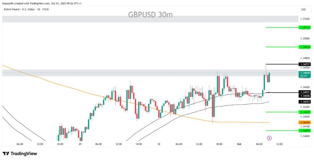 Scenario 1: Buy the pound with a breakout and stability above 1.3473, targeting 1.3491 and then 1.3511.