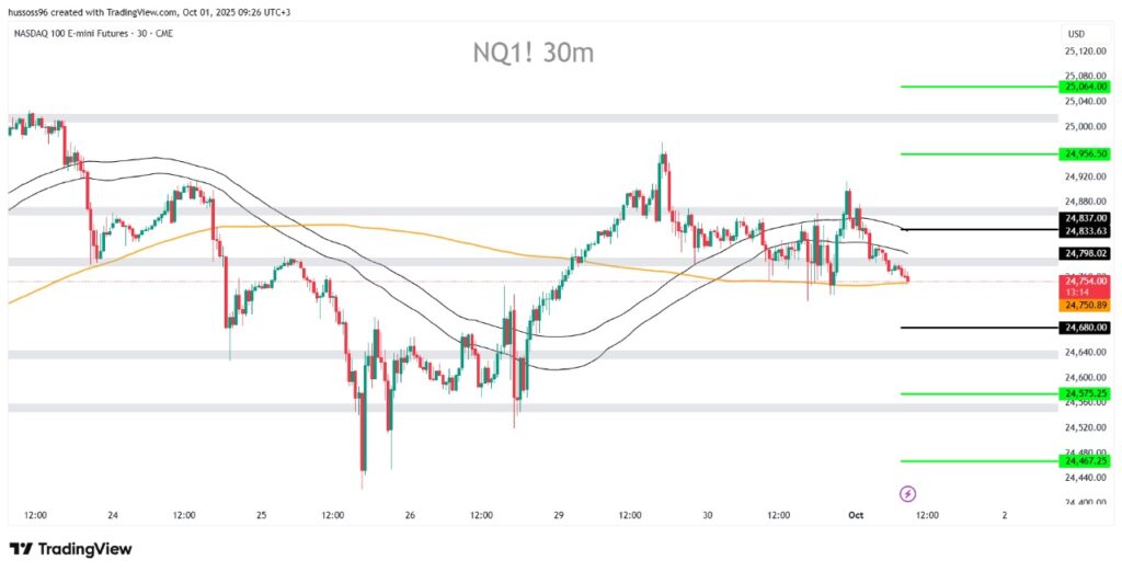 Scenario 1: Buy Nasdaq with a breakout and hold above 24,837, targeting 24,956 and then 25,064.