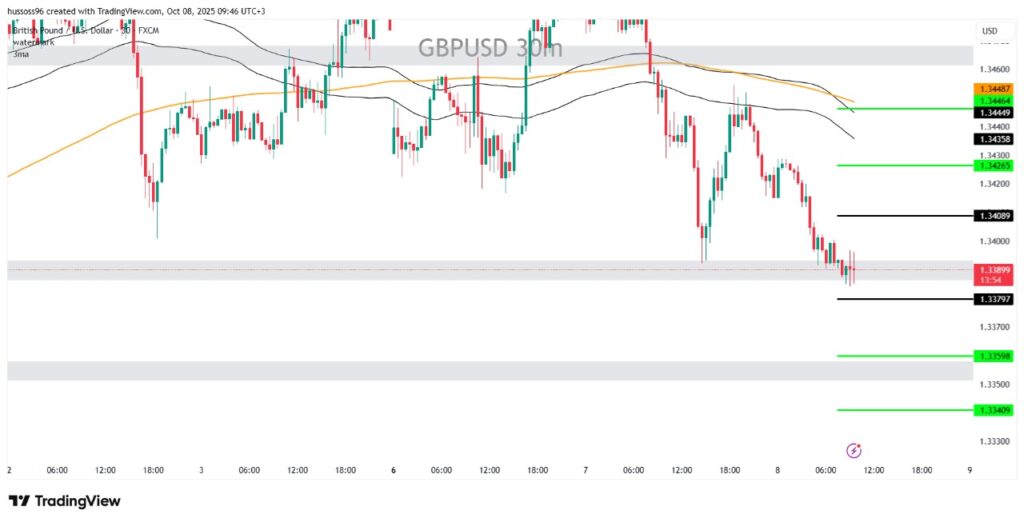 Comment: The pair continues its clear downward trend with strong resistance at 1.3440, and the loss of upward momentum confirms the dominance of sellers.