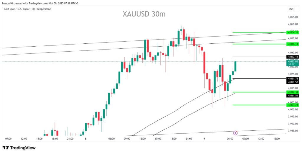 First scenario: Buy gold with a breakout and hold above 4,037, targeting 4,046 and then 4,054.