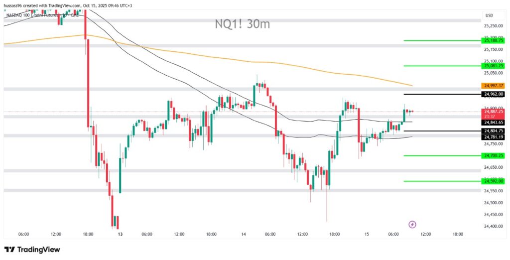 Scenario 1: Buy Nasdaq with a breakout and hold above 24,962, targeting 25,081 and then 25,188.