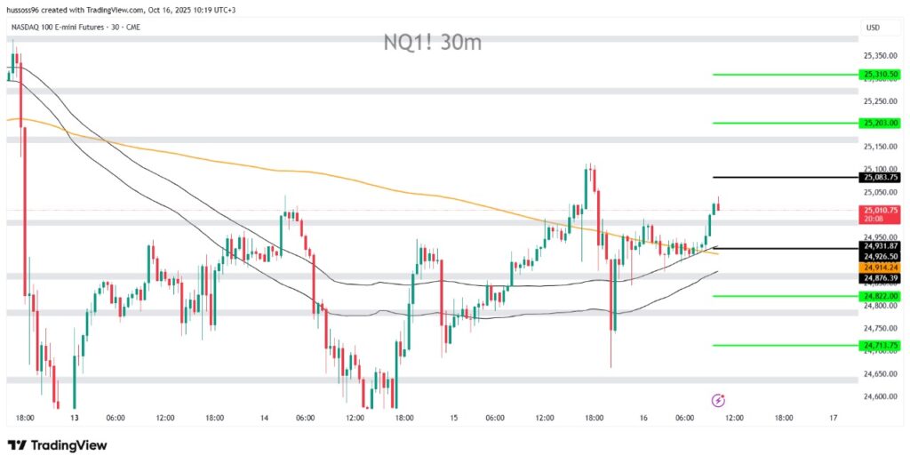 Scenario 1: Buy Nasdaq with a breakout and hold above 25,083, targeting 25,203 and then 25,310.