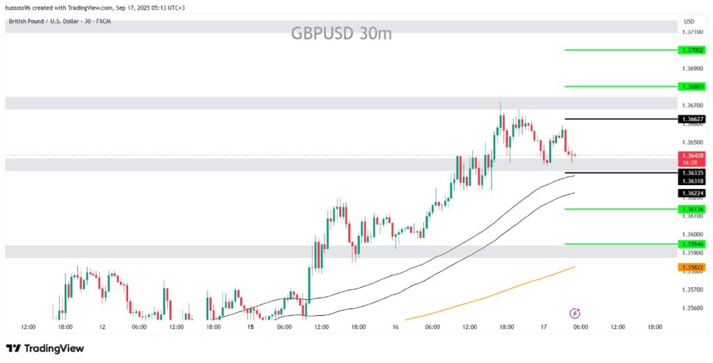 Scenario 1: Buy the pound with a break and hold above 1.36627, targeting 1.36803 and then 1.37002.