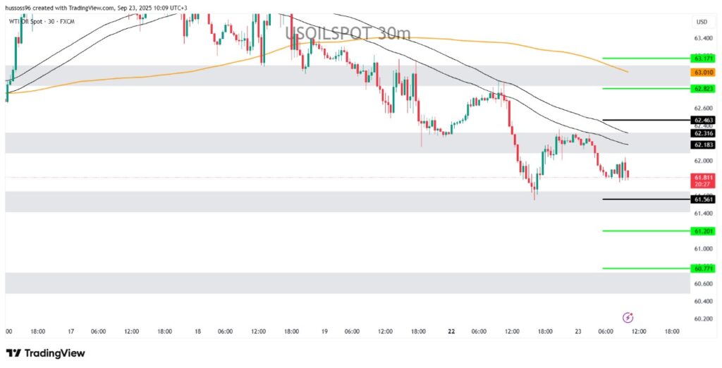 Comment: Oil is pressing critical support levels, and any break below 61.5 could pave the way for further declines.