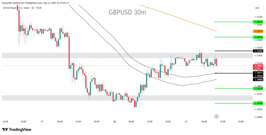 Scenario 1: Buy the pound with a breakout and stability above 1.35260, targeting 1.35436 and then 1.35635.