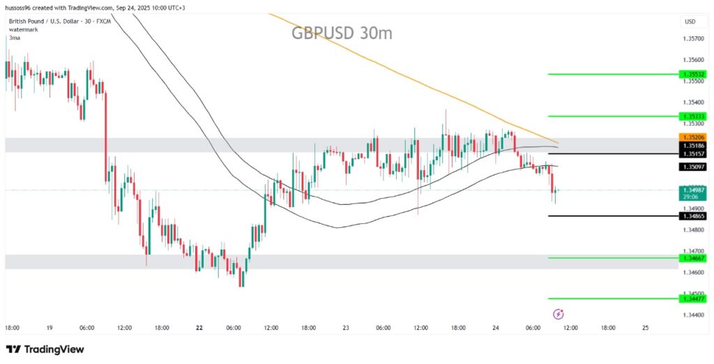 Alternative scenario: Sell the pound on a break and hold below 1.34865, targeting 1.34667 and then 1.34477.