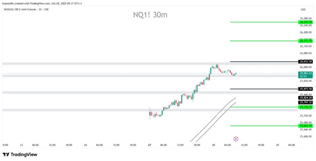 First scenario: Buy on a break of 26,032 with targets of 26,151 and then 26,259.