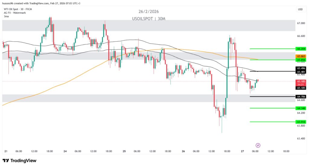 Oil prices remained broadly stable ahead of the renewed nuclear negotiations between Washington and Tehran, with Brent Crude trading around $70 per barrel and West Texas Intermediate fluctuating within the $65–66 range.