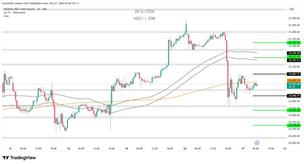 Note: The price has broken the previous upward structure and entered a sharp downtrend. Any current rally should be viewed as corrective unless a sustained move above 25,217 occurs.