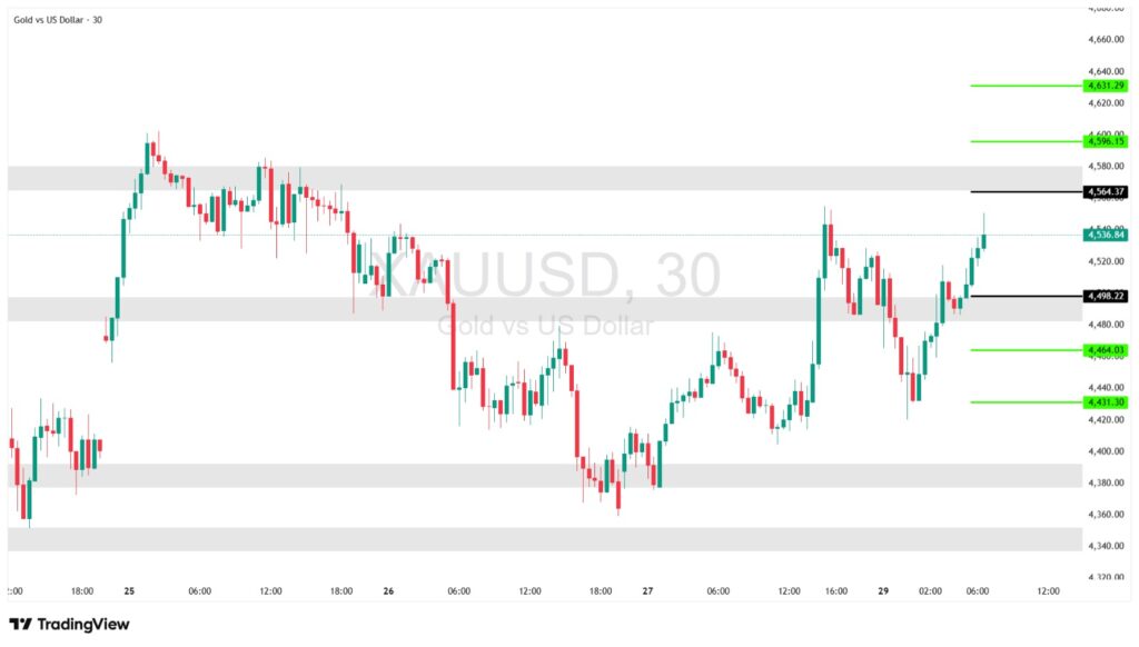- Note: Gold remains within a well-defined upward wave. Sustained price action above the 4,498–4,489 support zone reinforces the continuation of the bullish trend.