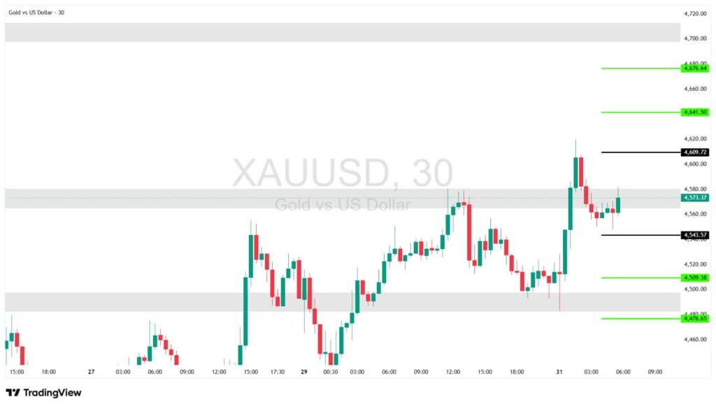 - Note: Gold is attempting to recover following the recent decline, but a confirmed breakout above 4,609 is required to validate further upside momentum.