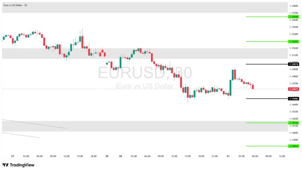 - Note: The pair is maintaining a bearish structure. Sustained trading below 1.1497 reinforces the likelihood of continued downside momentum.