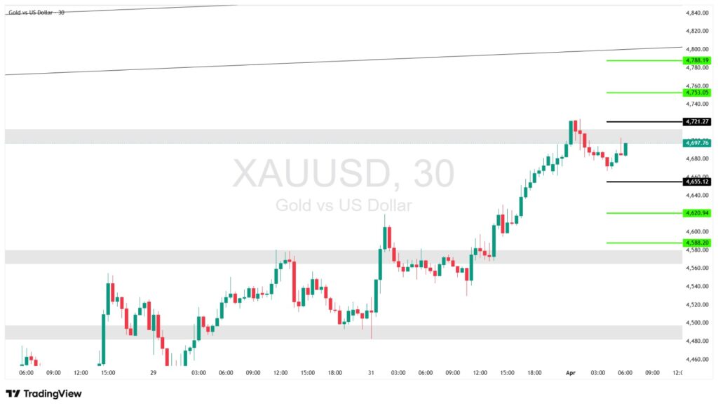 - Note: Gold remains within a clear upward wave, with pullbacks viewed as buying opportunities as long as price holds above 4,655.