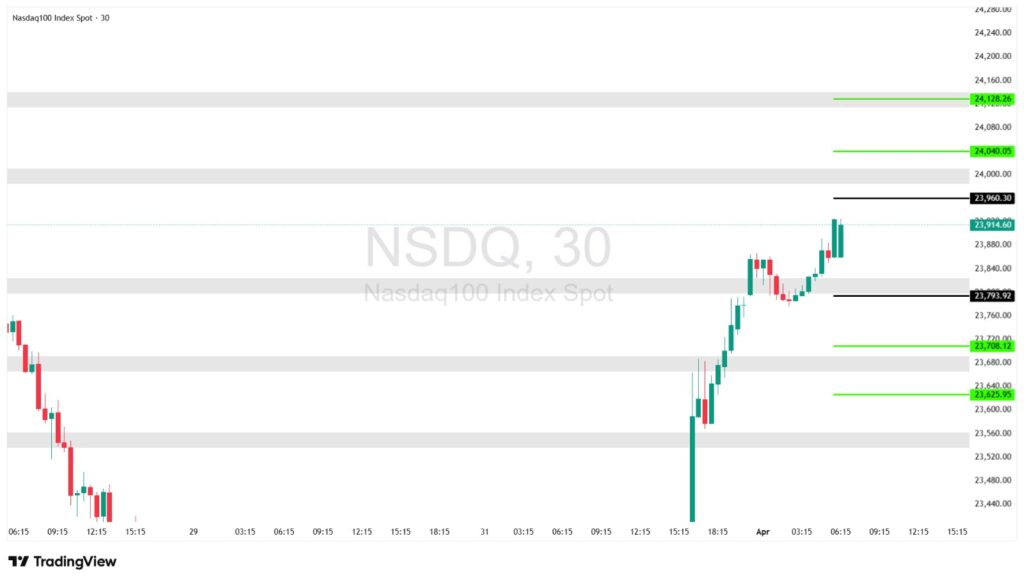 - Note: the index has recently shown signs of strengthening after breaking the previous bearish structure. Holding above 23,793 continues to support the bullish outlook and the potential for further upside momentum.