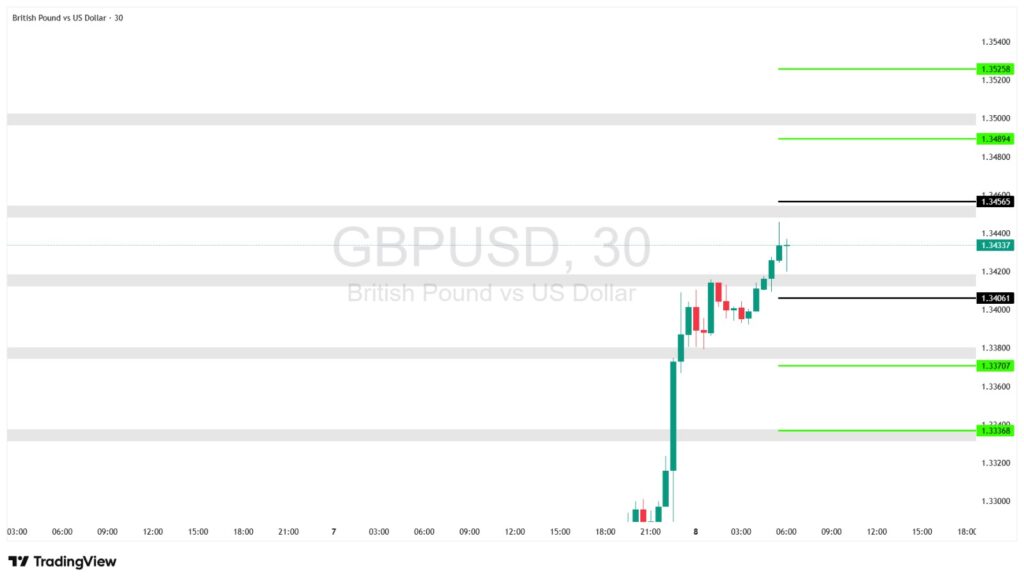 - Note: The overall trend remains clearly bullish, and current pullbacks are considered buying opportunities as long as price holds above 1.3406.