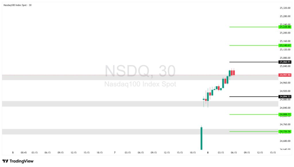 - Note: The index is showing strong bullish momentum, and only a break below 24,894 would invalidate the current bullish bias and shift the outlook.